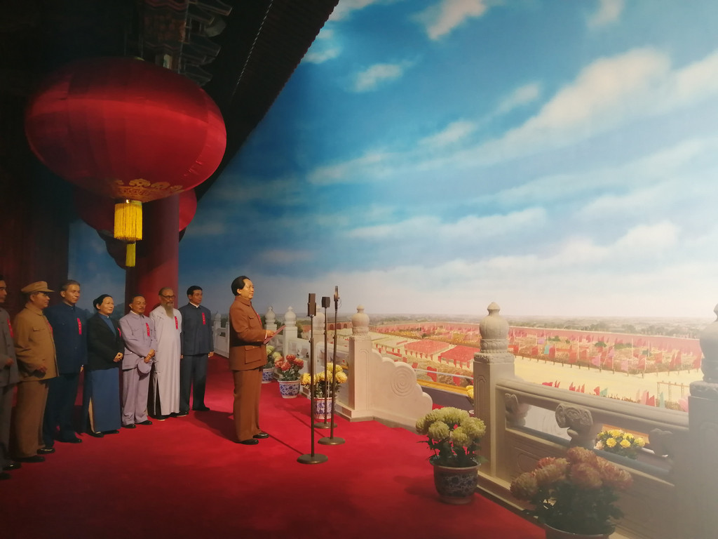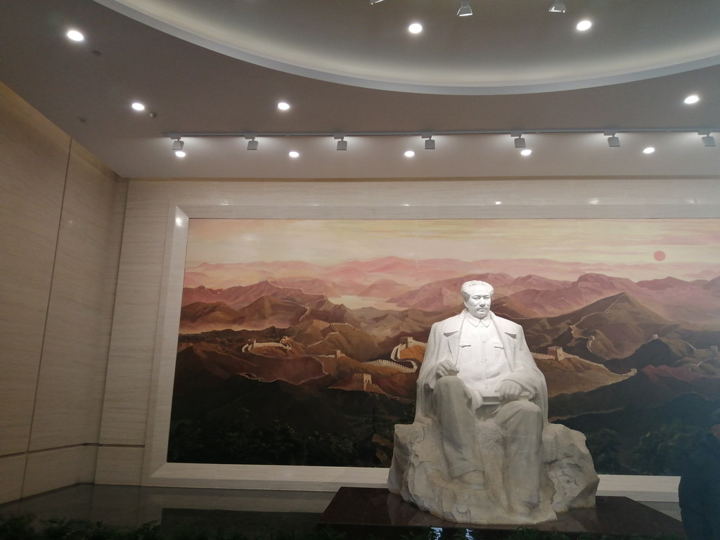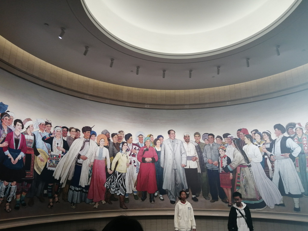 参观结束。出口处五十六个民族拥戴毛主席这幅壁画不错。