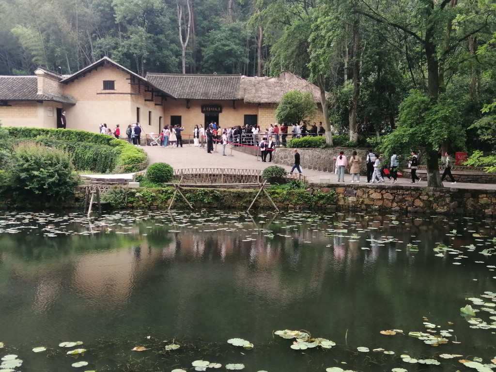 老爸有点激动。这幅故居门前水塘的场景,他多次在电视中看到。今天终于来到实地了。
