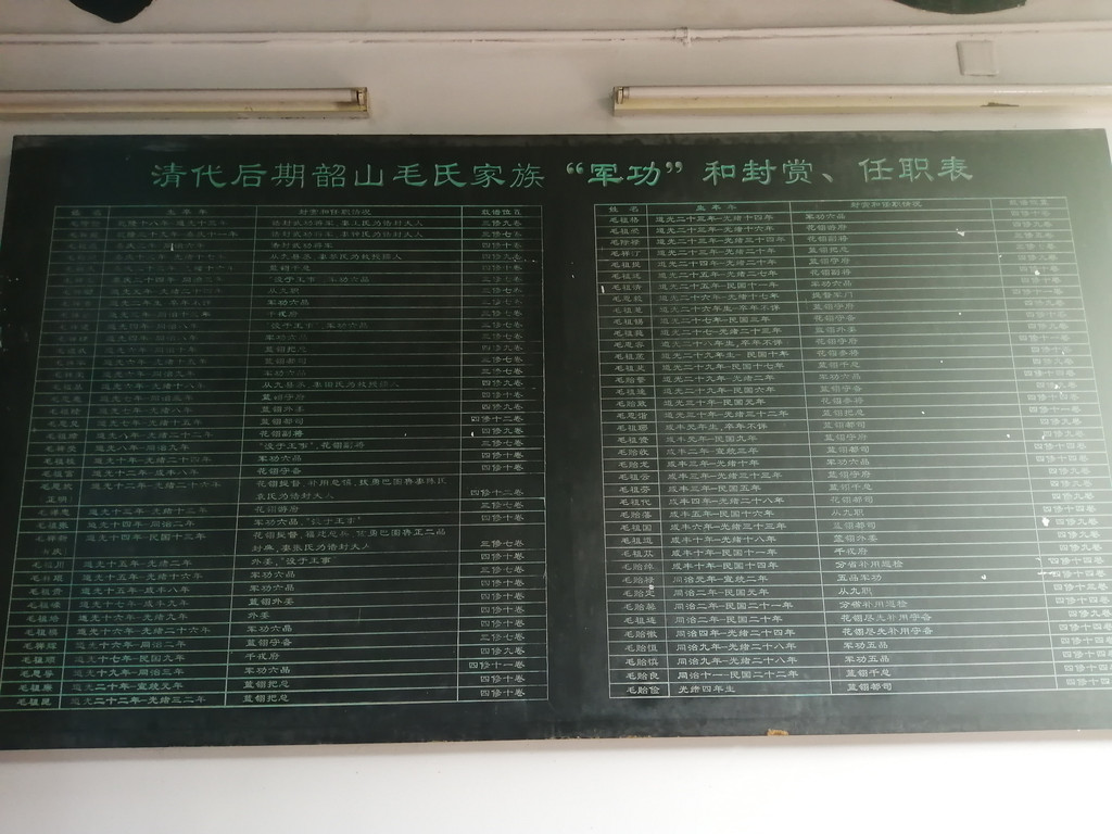 宗祠不大。介绍了毛氏家族的来历,祖上的军功和担任的官职。
