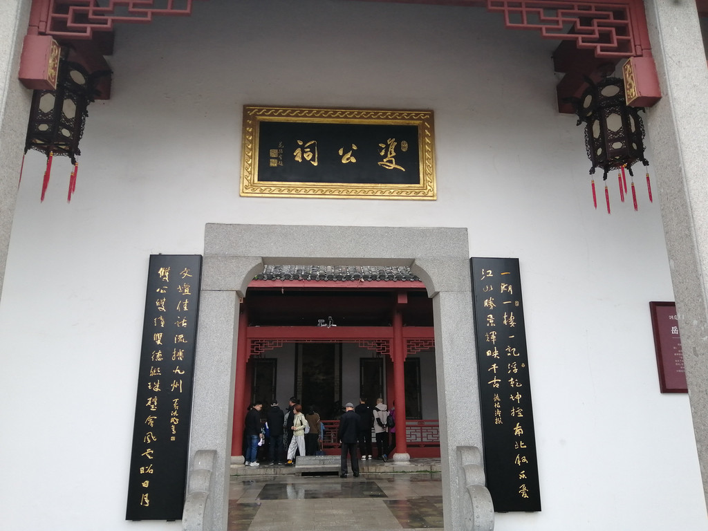 纪念范仲淹和滕子京的双公词。这块牌匾上的字是范仲淹的后人:原人民日报社长书写的。