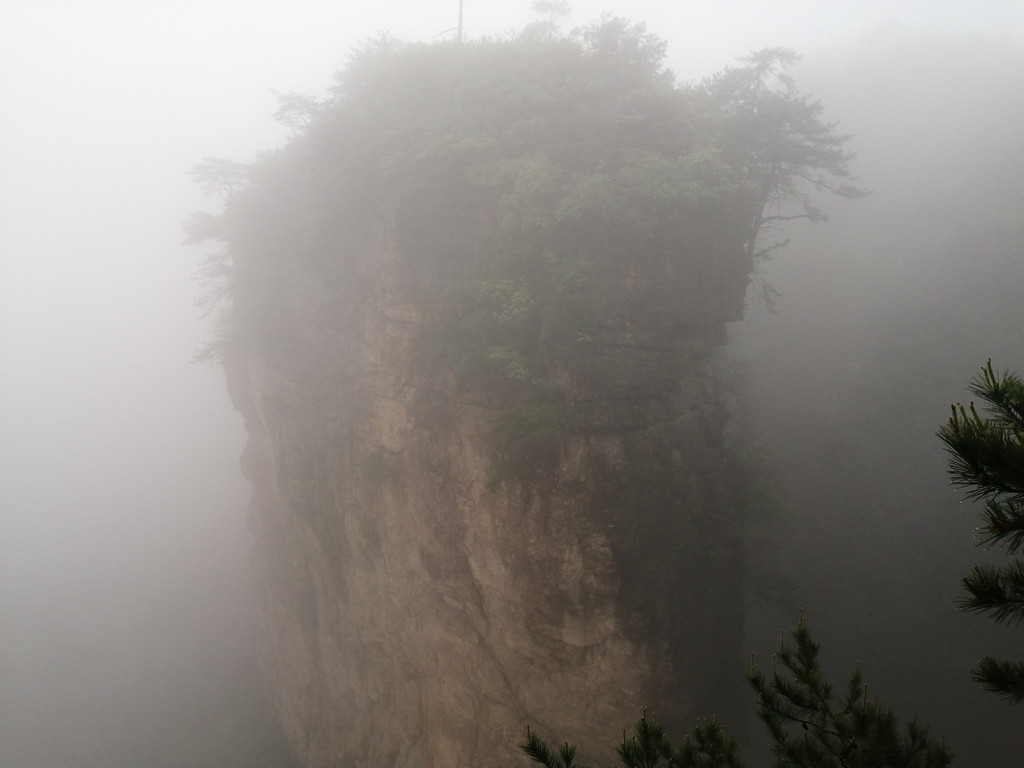 乾坤柱这里也是模模糊糊的。旁边拍照的小伙子说,可以拍完照P出来。觉得这样没啥意思,就没照。
