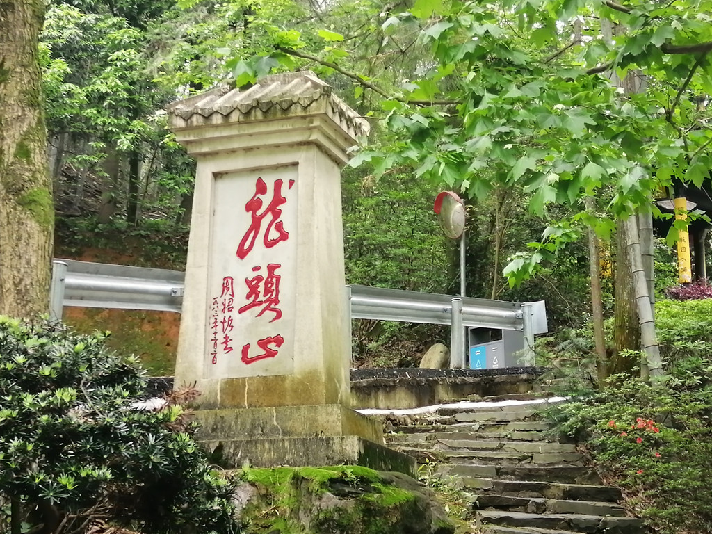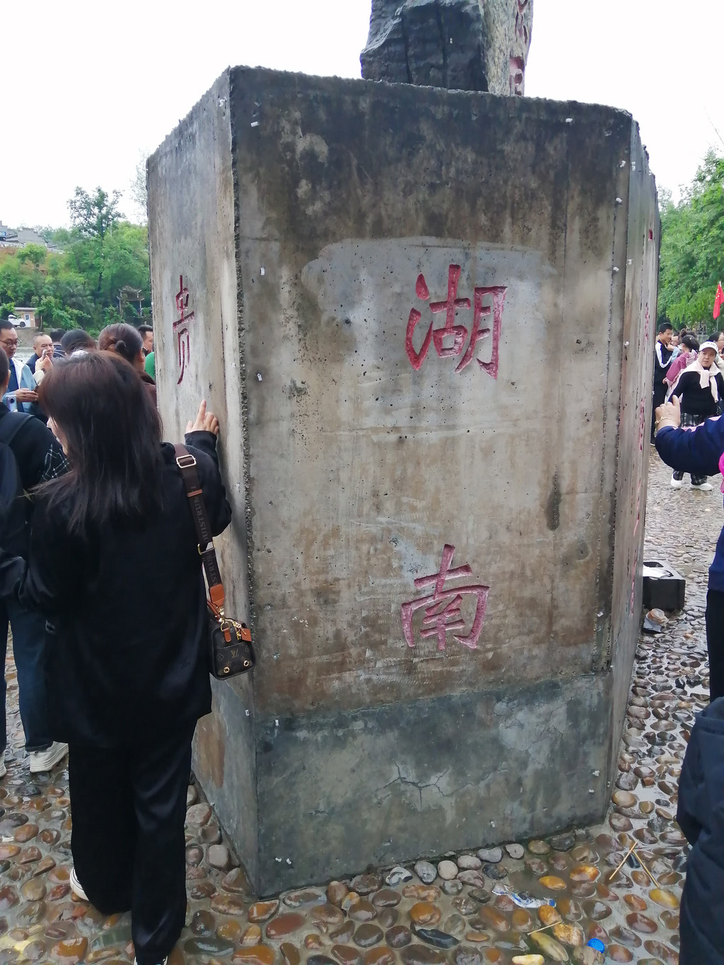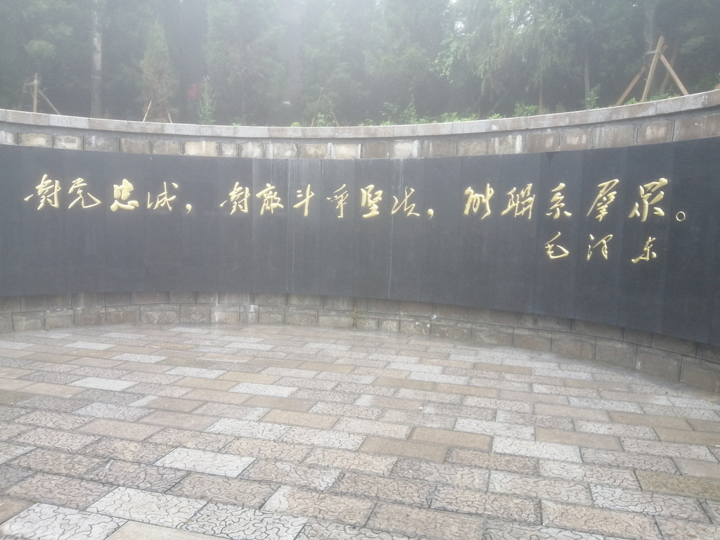 不能打退堂鼓,半途而废。好几次不想往上爬了,但还是坚持下来了。上山后有个小平台,这里就是毛主席祖父毛翼臣老先生的墓。平台上两位小姑娘是景区工作人员,建议上来的游客祭拜一下老先生,说会带来好运。墓前摆满了纸币和八宝粥等等食品。我恭恭敬敬的磕了三个头。当年抗战时期1940年,湖南军阀派人来毁老先生的墓。幸好当地乡亲们提前知道了。上山把坟头平掉,把墓碑转移。毁墓的那帮人找不到,只能放了一把火。后来1986年修建了就是现在游客上山的这条木栈道时,无意中发现了墓碑。现在墓碑摆放在滴水洞一号楼门口。据说以前这座山全是荆棘,上山相当困难。毛主席几次回韶山想上去祭拜,被随行工作人员劝说不要上去。也未能成行。当年老先生的棺木是如何运上去的,也是个谜。