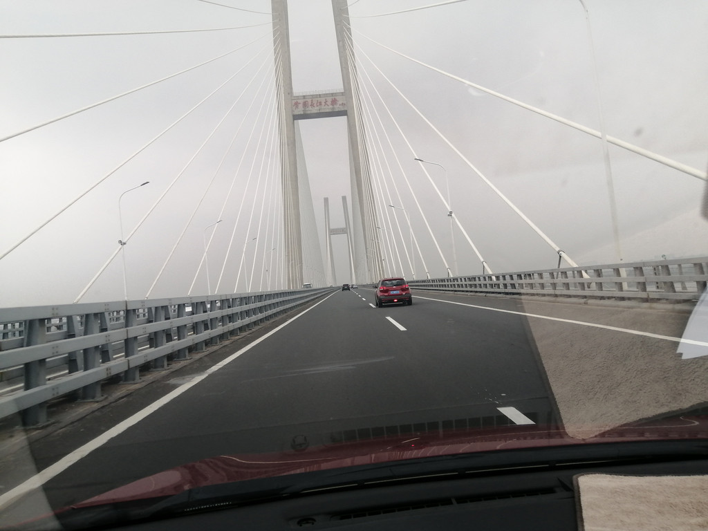 从黄冈长江大桥过江。一路通畅,上次自驾来武汉还是十几年前了。现在湖北的高速公路超好。