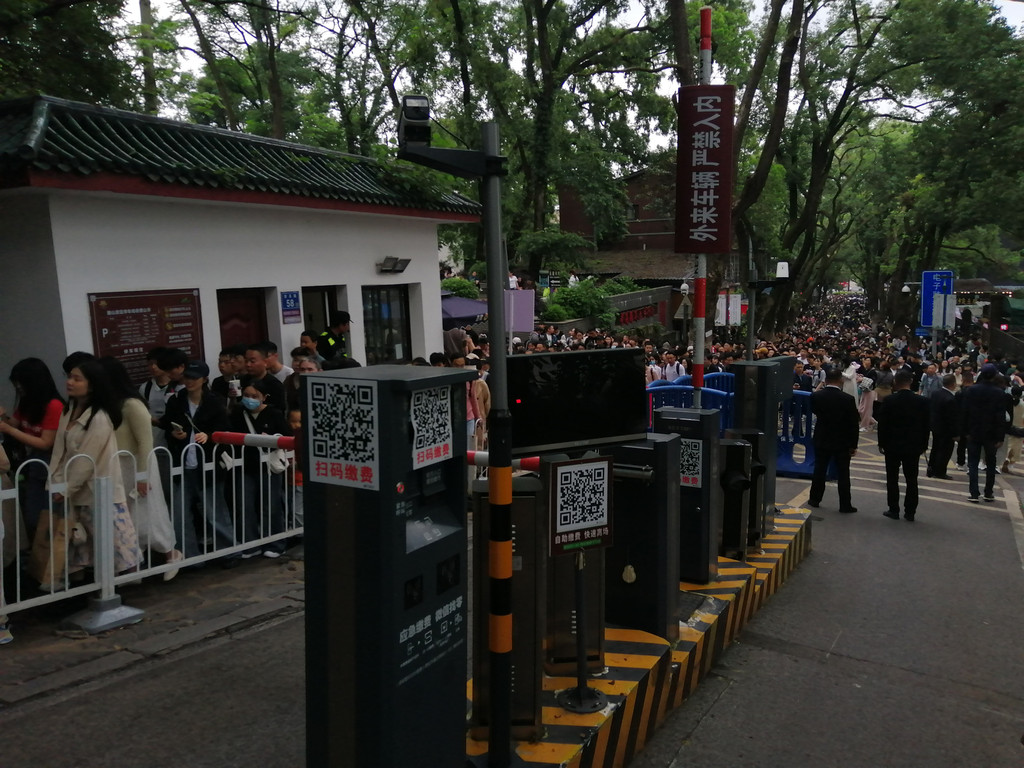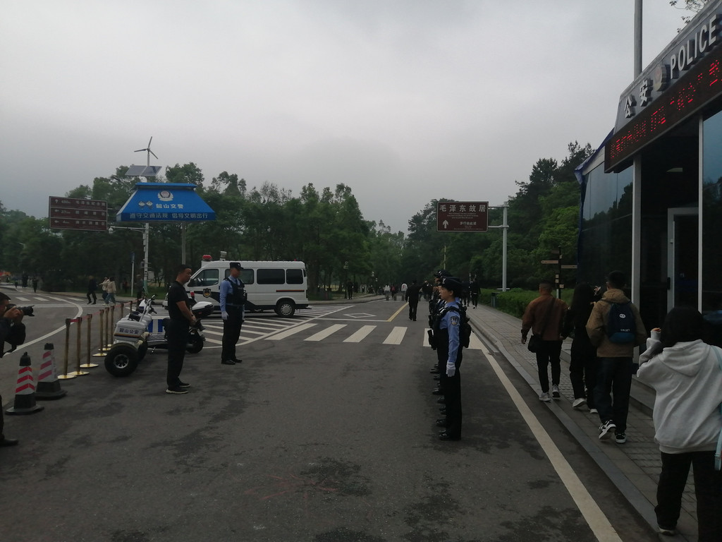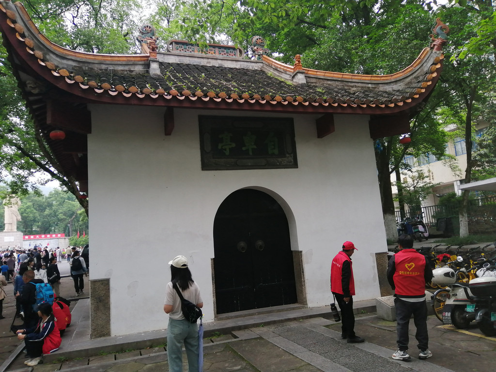 出站没几步路。就是自卑亭。今天选择公共交通游长沙是正确的。这里两旁的道路已经临时管制了,禁止社会车辆通行,路口有交警守着。就算能进去,停车也是个大问题。