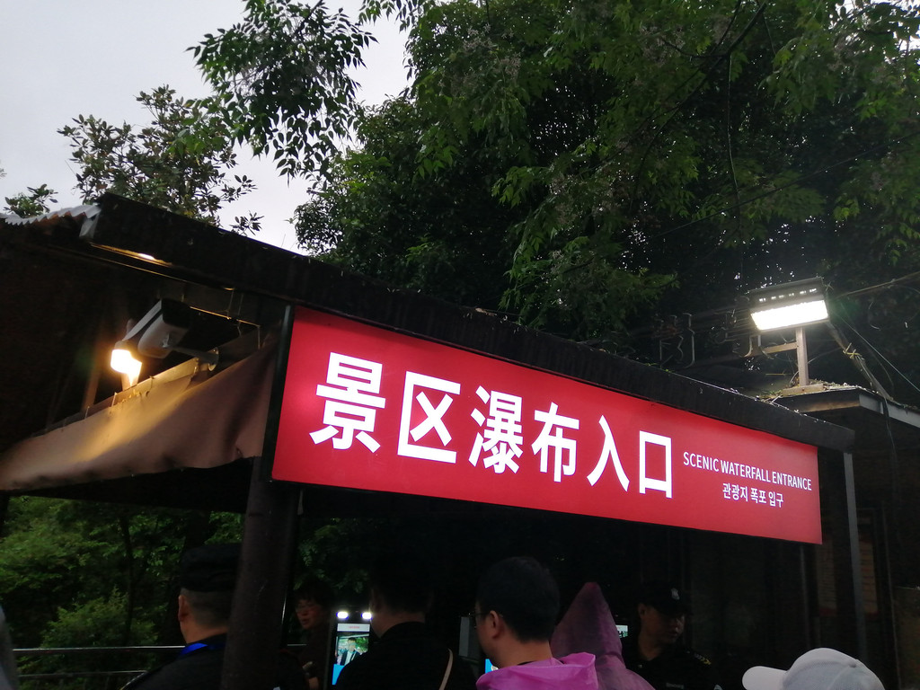 看完瀑布,原路返回。演出19:00开始。此时剧场清场,所有人必须出来。到外面入口检票重新入场。排队的长龙,把路也堵了。