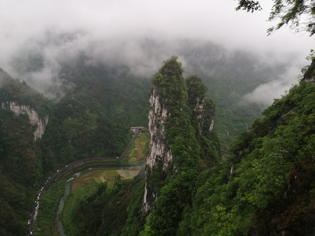 天下第一桥站坐车去天子山。到了三岔口要下车再转车。原计划转车后在点将台下车的。结果这种天气,也没啥看头。直接到天子山。