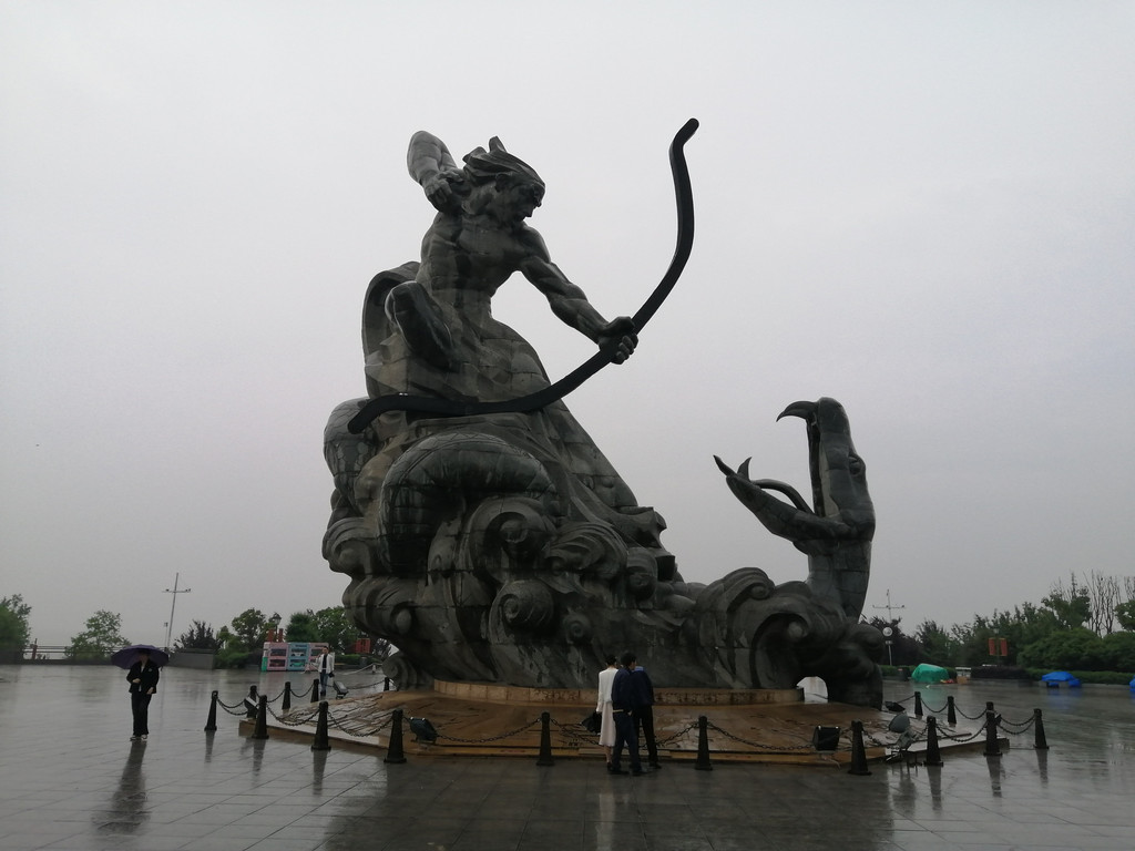 停车场出来是巴陵广场。后羿射巴蛇雕塑。