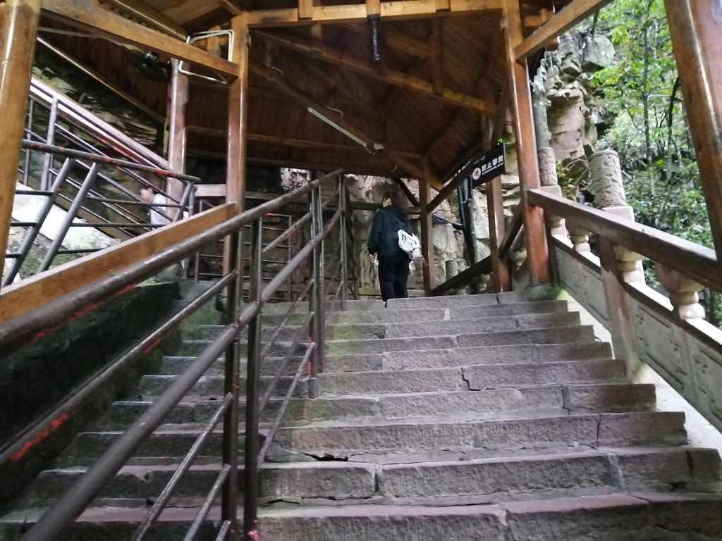 景区公交下车后,还要爬一大段台阶才能到百龙天梯。