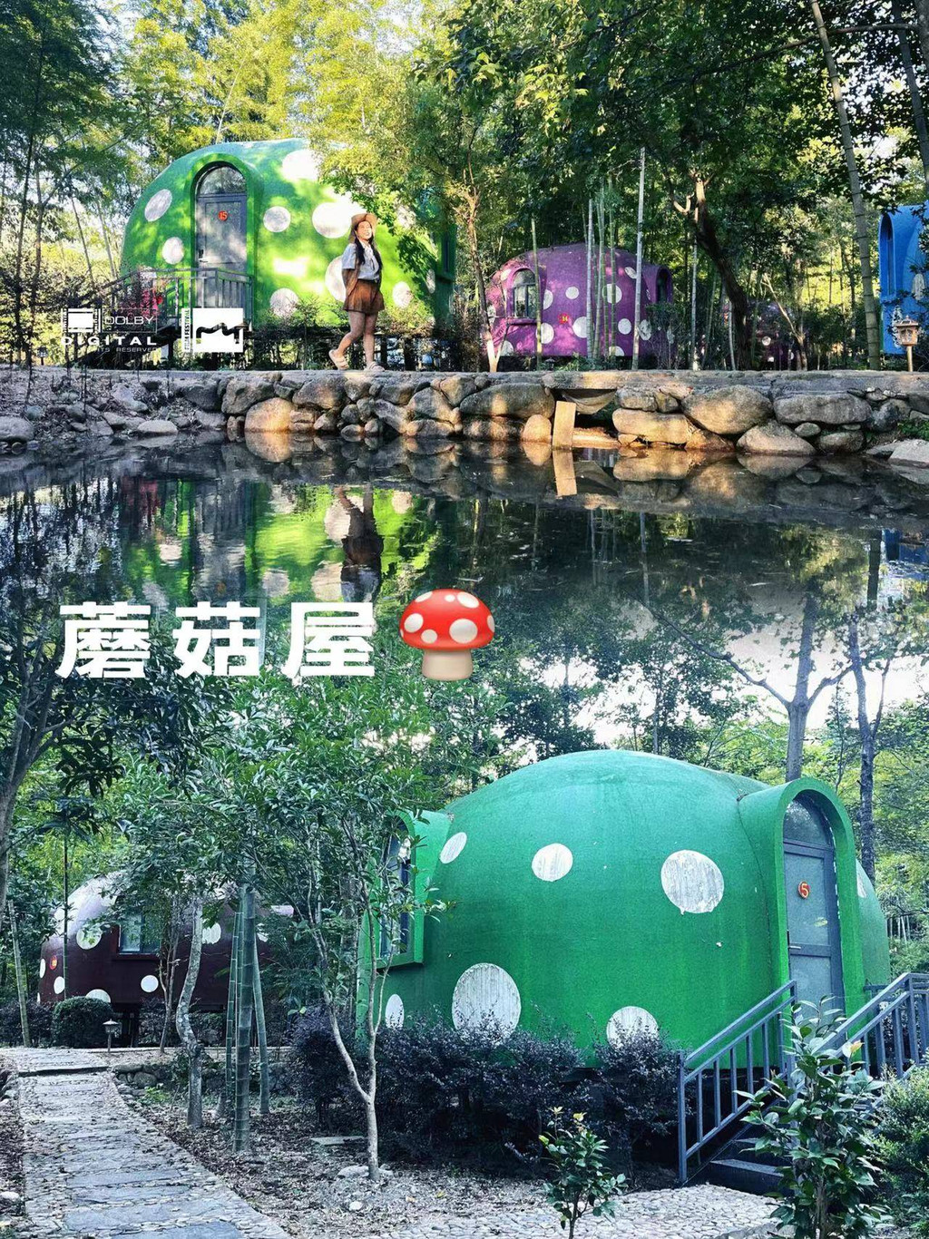 夜晚来临,带着满足与惬意,枕着星空,听着蛙鸣,或入住在温泉酒店,或入住林中童话蘑菇屋,都是不错的选择。