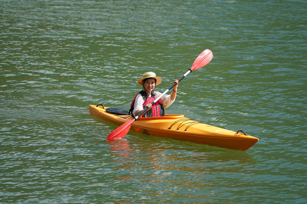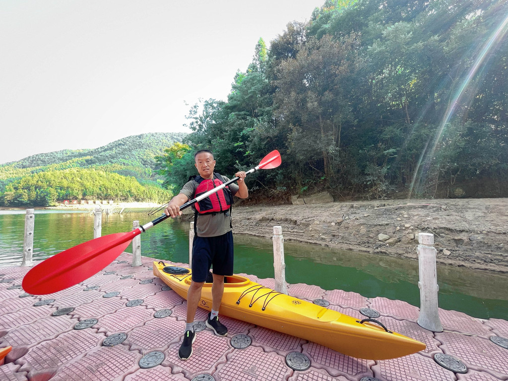 皮划艇项目有专业的教练和工作人员对初学者进行一对一指导。即使是0经验的,不会水性的像我这样第一玩的小白新手非常友好!我属于很笨的,下水后约10来分钟也能上手!被群山环绕的平静湖面上几乎没有波澜,蓝天白云下如同镜面一样。两岸是郁郁葱葱的大树,滑行期间,如同置身油画。清风拂来,波光粼粼。泛舟游湖的同时,还能享受大自然的治愈馈赠!