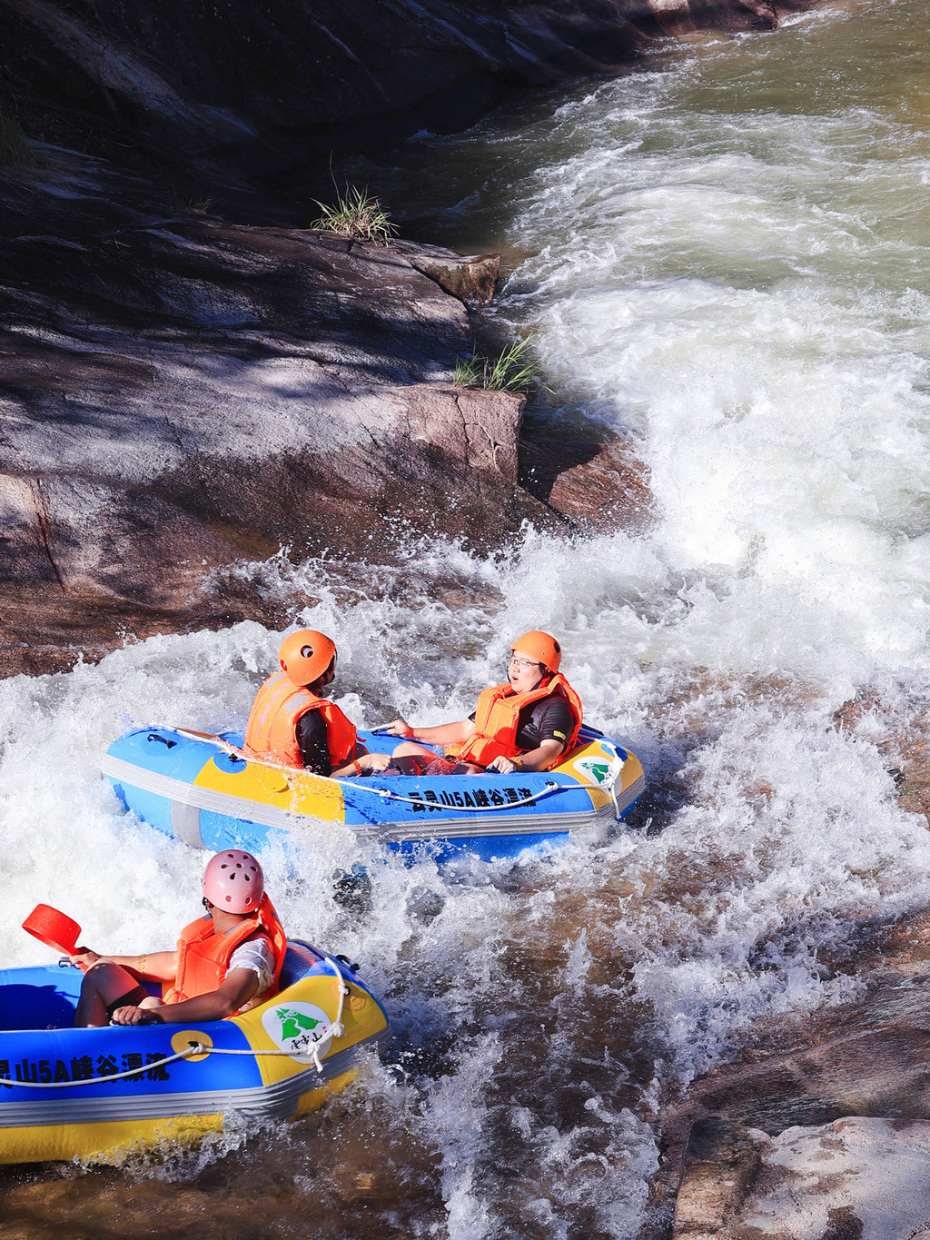 总的来说滑道时急时缓,激情宁静兼得的漂流,玩的太开心了!水质达到国家二级饮用水标准,女孩子们也可以放心玩耍。漂流两侧的植被覆盖率很高,可遮挡强烈的阳光,夏日里顶着太阳玩水,也不用担心会被晒伤。山川、溪流、竹林、湖泊…一边玩水,一边欣赏云灵山独特的自然景观,十分惬意畅快。