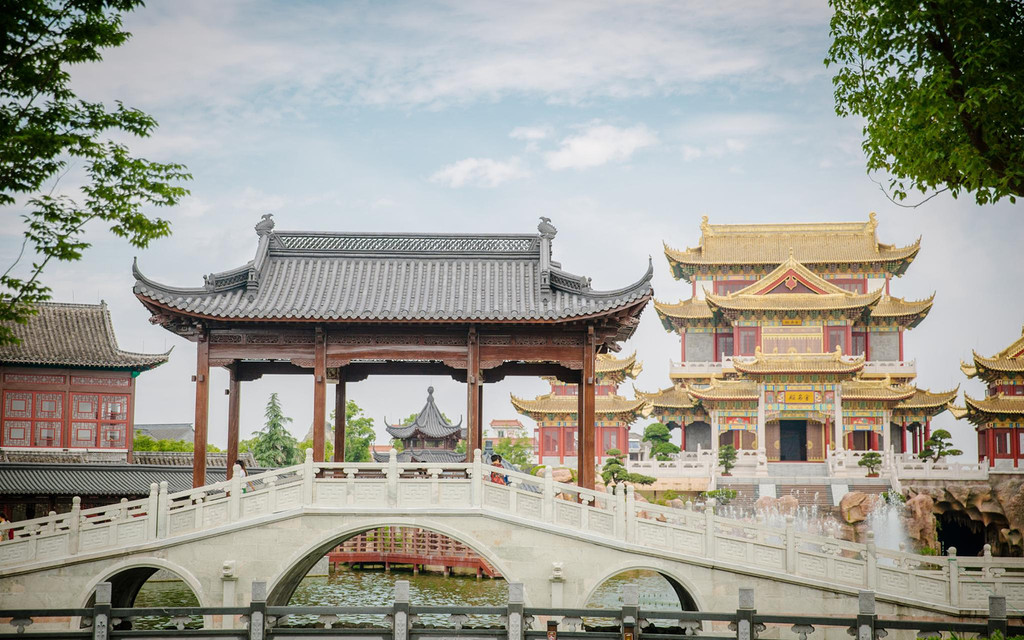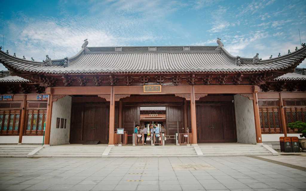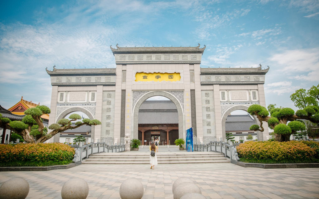 出门了别急着走,门口一旁的玄宇园里还能领略徽派建筑的美感,远远望去亭台楼阁,瀑布水榭尽在其中,若是有兴致,还可以在门口的古装换装处换上汉服来这里玩一把穿越。