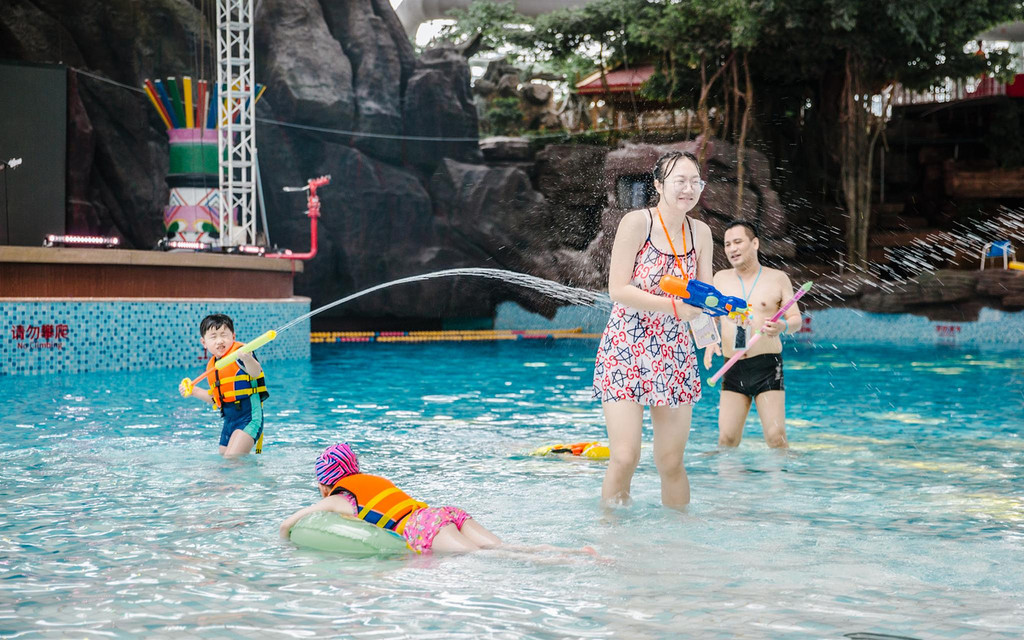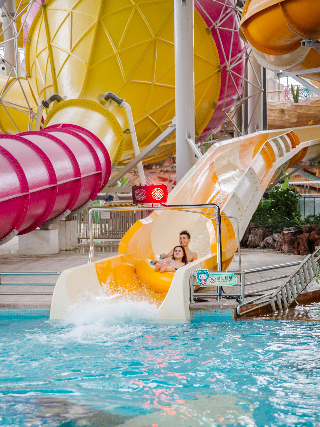前台拿了钥匙寄存好行李后便迫不及待和小伙伴们奔向了水之王国,一场人工淋雨潇洒一身,便可以开始今天的夏日逐浪之旅啦。