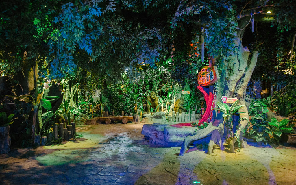 山之王国的地下一层嵌入了一个人造热带雨林景观,地形复杂多样,地貌千奇百怪,让人惊叹!