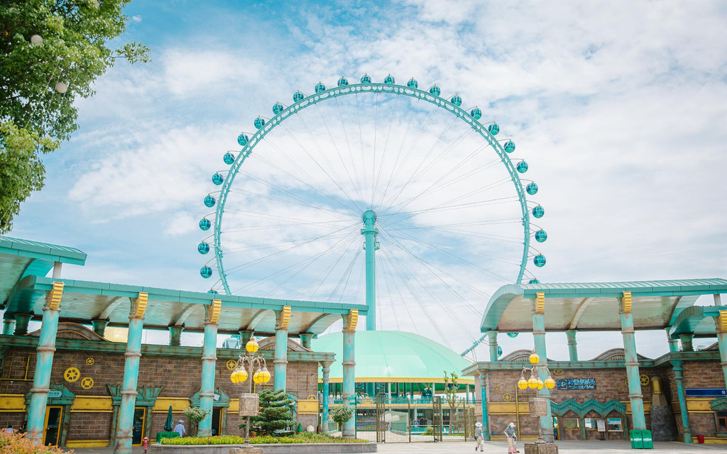 与其他游乐园不同的是,这里的摩天轮是带有空调的,40多分钟的时间慢慢升到88米高空,在36个球形舱里,将整个园区收于眼底。