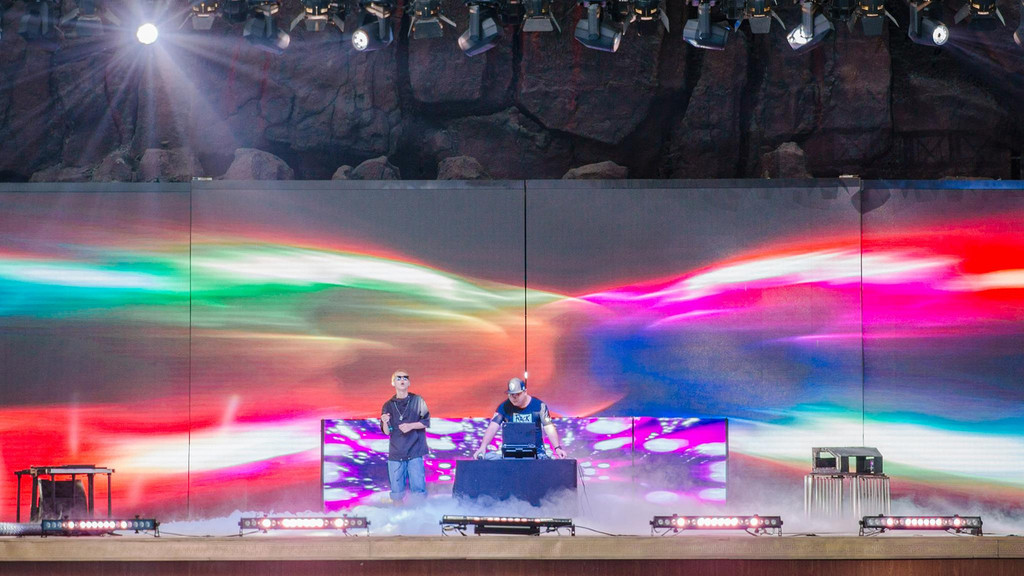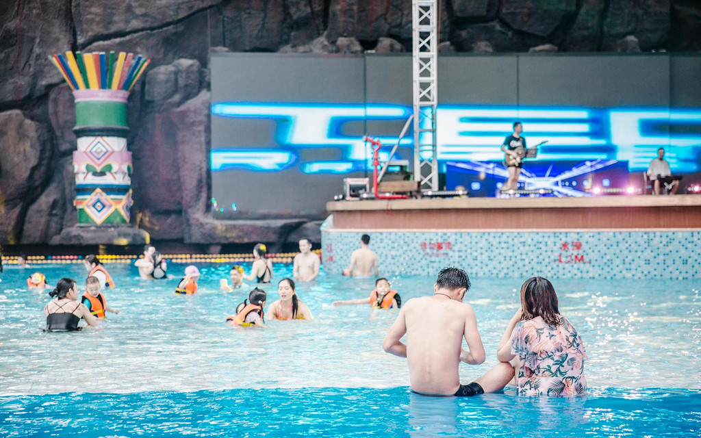 对面的舞台上不时的有着汇聚中外风情的特色演出,玩累了坐在浪边欣赏着表演,听着音乐想来也是一种夏日放松。