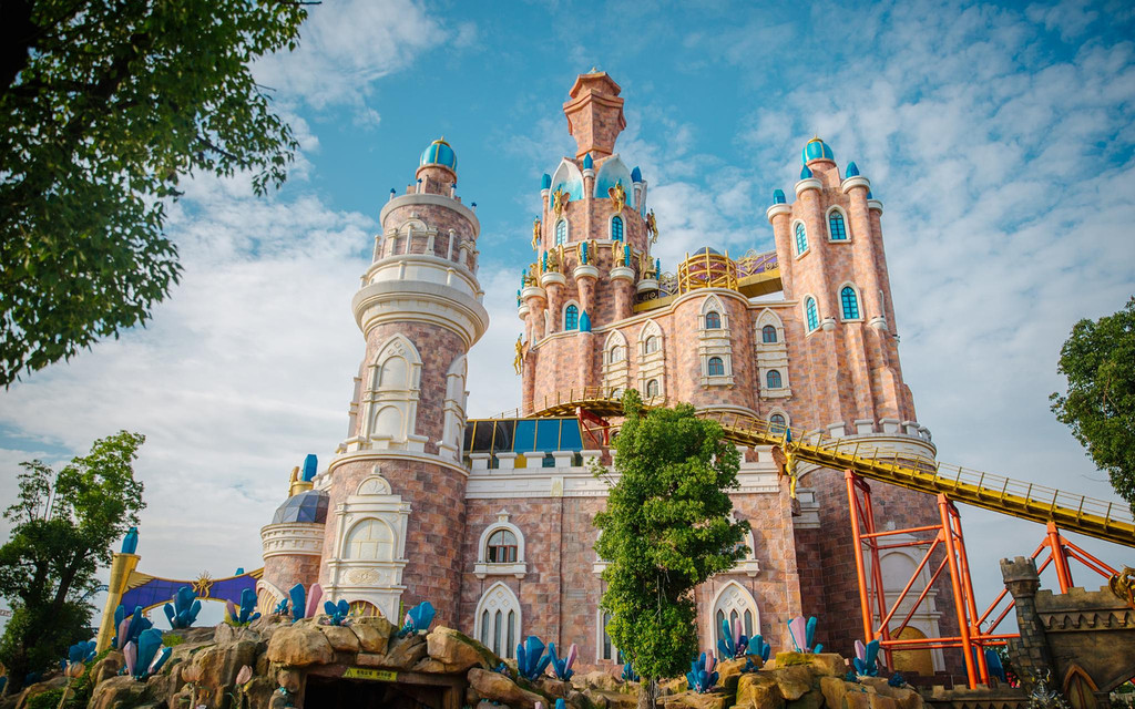 乐园里的水晶城堡超级梦幻,坐落在酷玩王国的中央,是整个乐园标志性建筑,也是很多小姐姐们拍照打卡的必选之地。