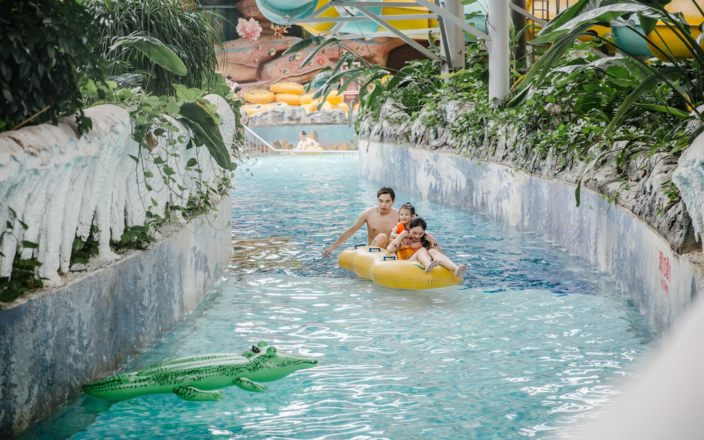 若是玩的疲乏,不妨套上各种可爱的救生圈,随着水流在清澈湛蓝的河流中漫游欣赏眼前的热闹风景,体验专属于水之王国的清凉激爽。