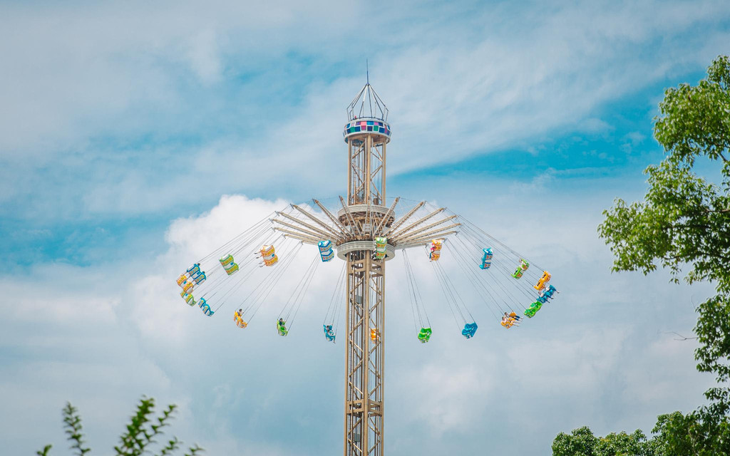 去完再去一旁的高空飞塔,在58米的高空体验一番飞翔的感觉吧。
