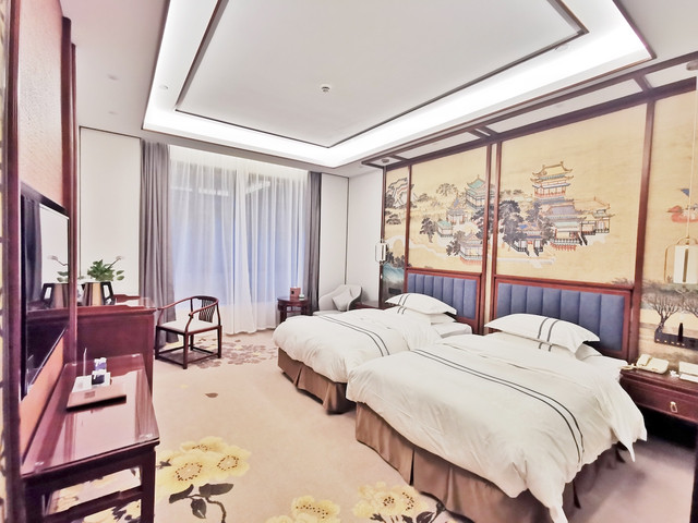 因为这次行程几乎都是在绍兴上虞区及其周边不远的地方,所有我们把住宿安排在了上虞宾馆,当地一家五星酒店。酒店三面龙山环抱,一面碧水荡漾,清静幽雅,房间和整体的装修也是很清雅的风格,馆区内有闻名遐迩的舜井古迹,水清如镜,晶莹甘洌,积淀了几千年深厚文化。