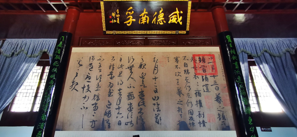 跨进祝府大门,就看到白墙黑瓦上镌刻的祝府家训:“仁孝贤诚”,四个大字赫然醒目,充分说明了祝府的家训是多么严格,而我们这个美丽爱情故事的主人公之一的祝英台,从小就是在这样的家庭成长,最后成为了一个多才多艺、重情重义的女子。