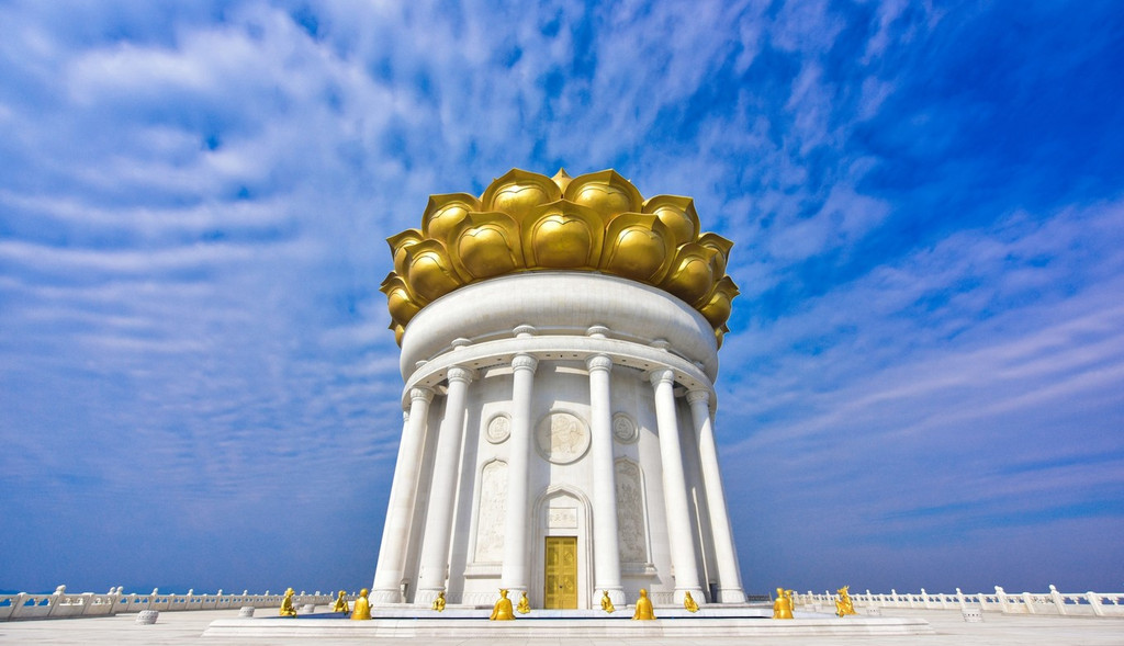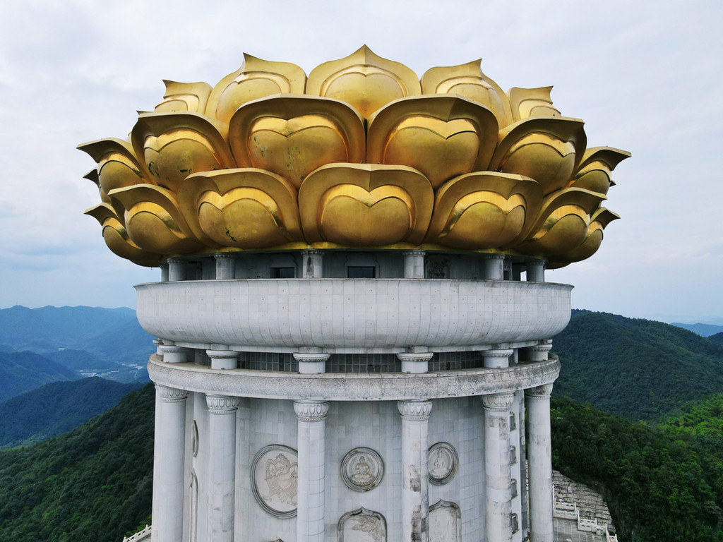 48瓣 紫金 莲花之上承载一座无相大佛,凡人只见脚印不见真身,佛家弟子用非常浪漫的方式诠释了心念所及之处得见如来。
