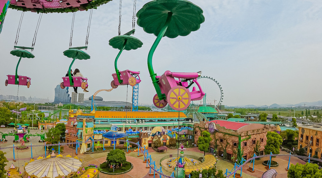 我特别喜欢酷玩王国里的超级摆锤,飞舟冲浪,双龙竞速酷玩列车过山车,高空飞塔,冒险岛峡谷漂流…精彩又刺激!玩累了就去鉴湖之星摩天轮上看风景,或是魔法花园里坐个旋转木马或是高空揽月缓一缓。