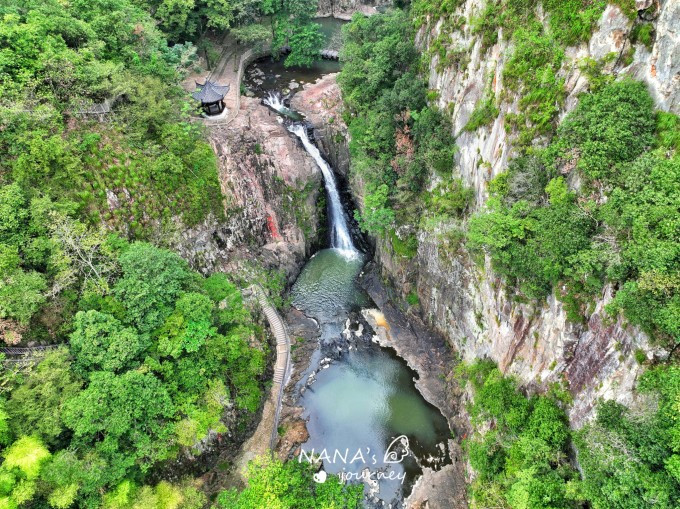二洩不远处便是第一泄,半边的瀑布水,绕圆孔而过,如月笼轻纱般。虽然第一、二洩均无后三洩的气势,但反而有种小小的可爱之情。