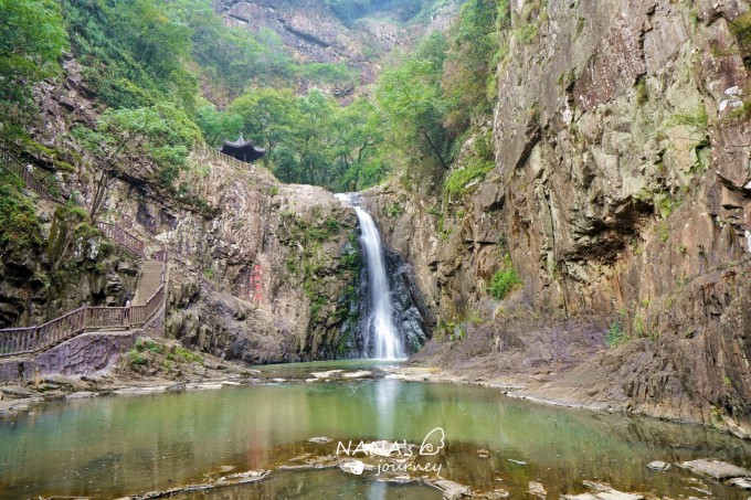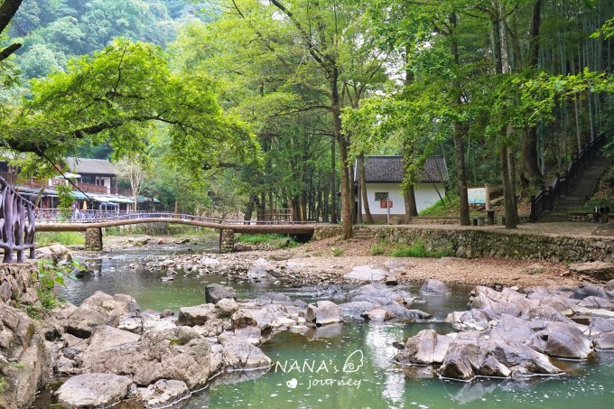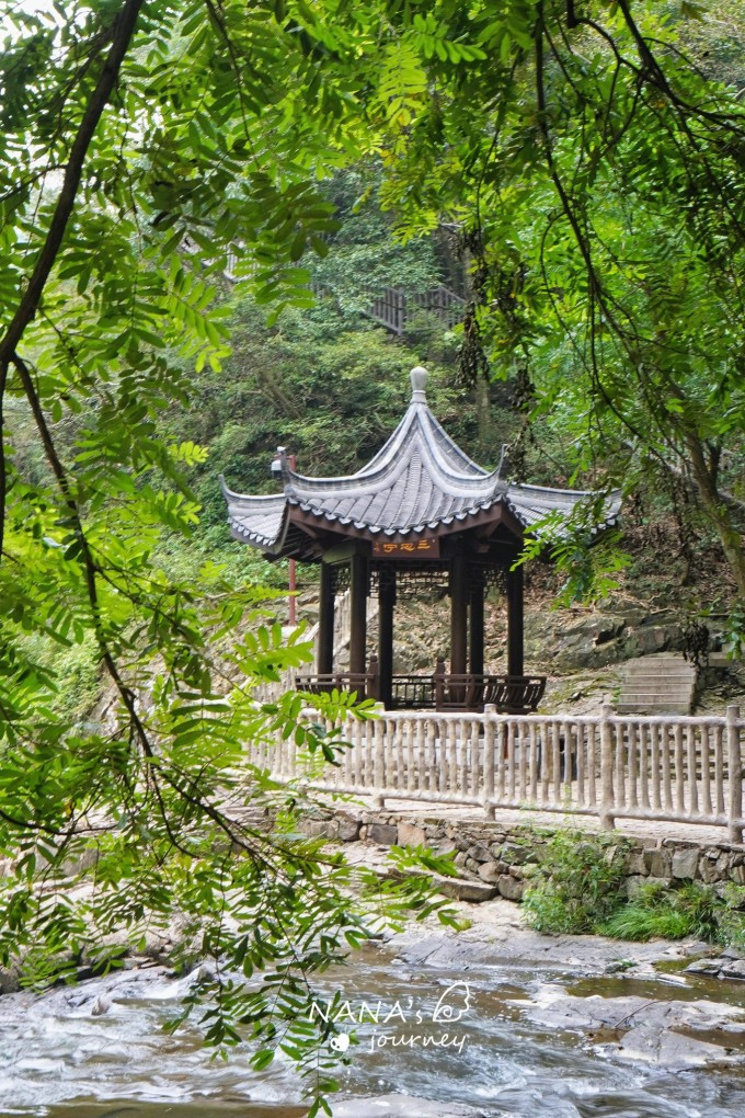 穿寺而过,第一片戏水之地已然出现了,这个季节游客虽然不多,但仍能见到人们找台阶下溪流了,这里的水浅,相对平缓,很适合孩子们戏水游玩,不过如果想看五洩的壮观的,就不能在这里停留啦~