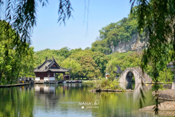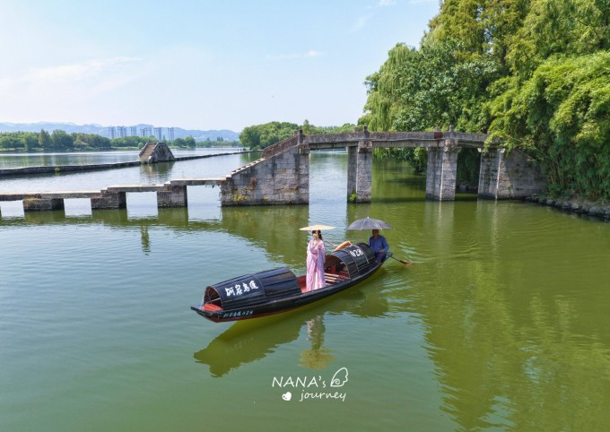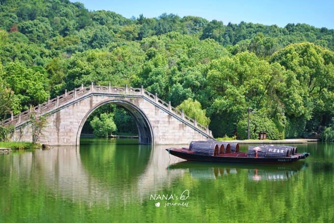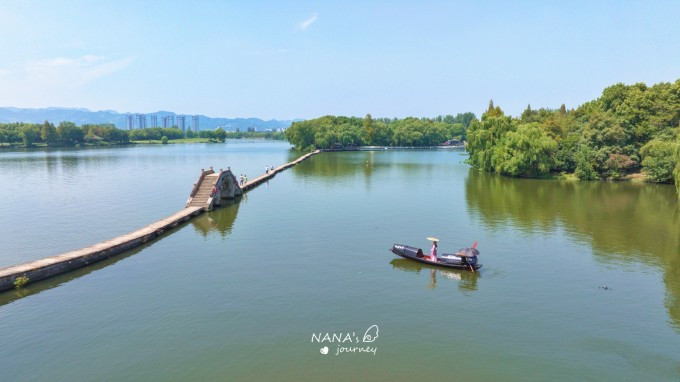 船桨拨着湖水,激起片片涟漪,船儿微微晃动,穿过一而又一古桥,时间静逝,岁月静好……