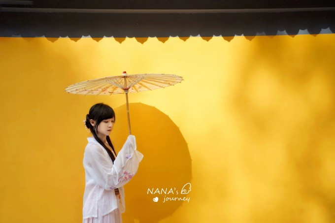 寺庙黄墙,别有风味,撑伞走过,美轮美奂。寺院的两侧皆有回廊,不要错过典雅之美。