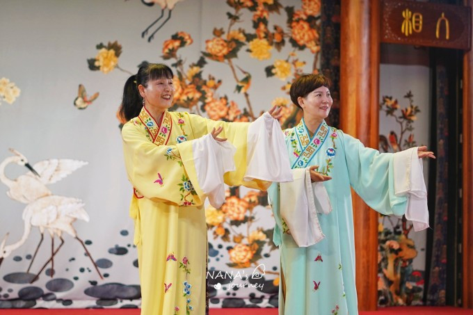 穿着戏服的女子越剧演员,唱着越剧,摆着动作,甩着水袖,演出了一幕幕什么感动的剧情,我们也被这美妙的曲调所吸引了。
