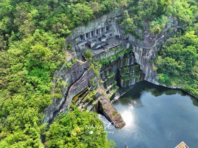 卧佛的下方是开凿的崖壁,有瀑布,很壮观,但是从天上,更能感受古代人的智慧!