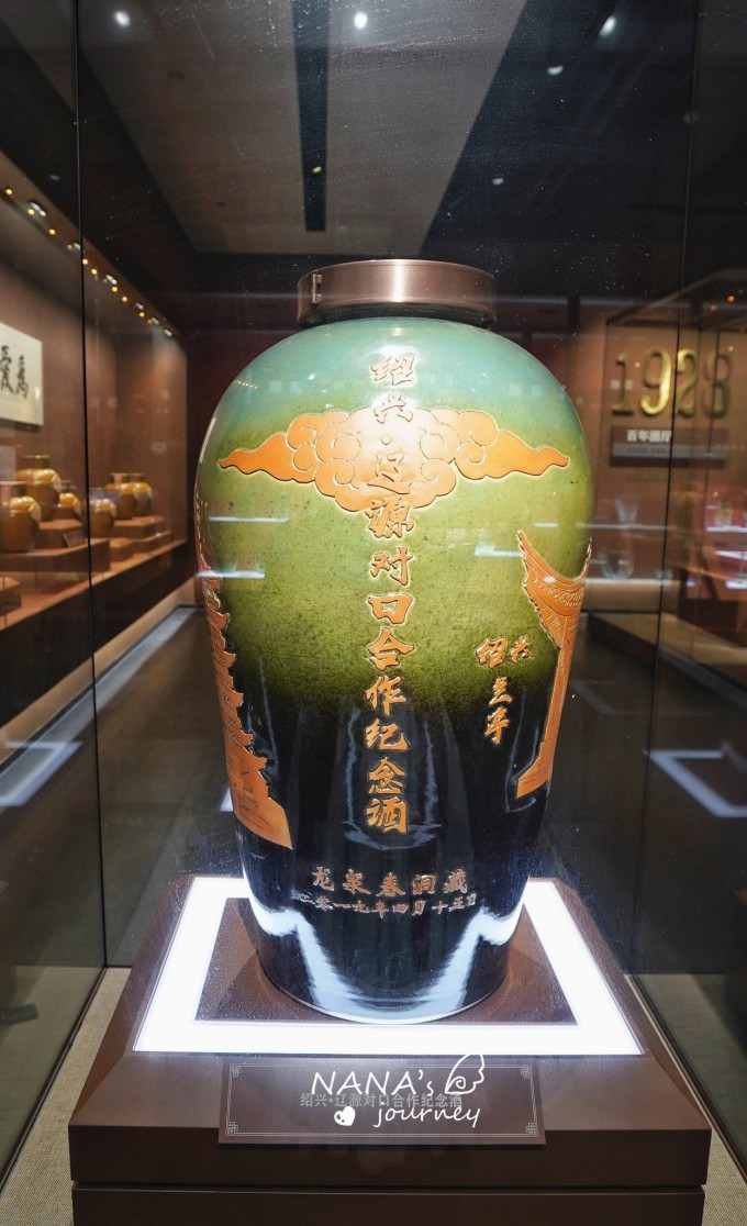 一楼的展区还有各种精致的黄酒展示,包括一些合作款的纪念酒。因为黄酒越放越浓越放越香,所以黄酒是有存酒的习俗的。