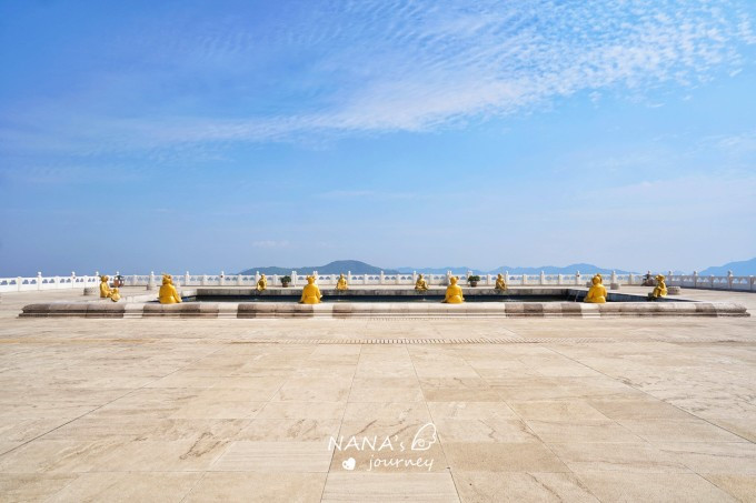 顶上的平台还有十二生肖喷泉,从这里欣赏莲花宝座更是壮观。想来,如果山间腾云驾雾之时,便有了“天宫”之意境。