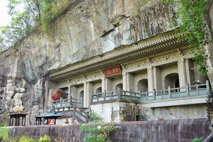 穿过长廊,便是南朝古刹最珍贵的 弥勒 佛石像了,外面有楼阁保护。这尊佛像被誉为 江南 第一大佛,直接雕凿于崖壁之上,气势磅礴。只是可惜现在依旧是为期18个月的维护贴金,无法见到真容,实则为一个遗憾。