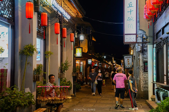 入夜后的仓桥直街,更显浓郁的水乡风貌,红灯笼下的古街,就像一幅水墨画卷展露在我眼前。