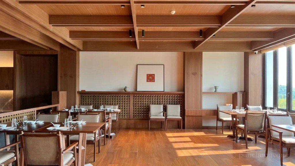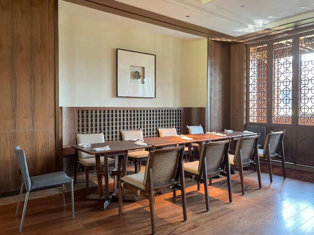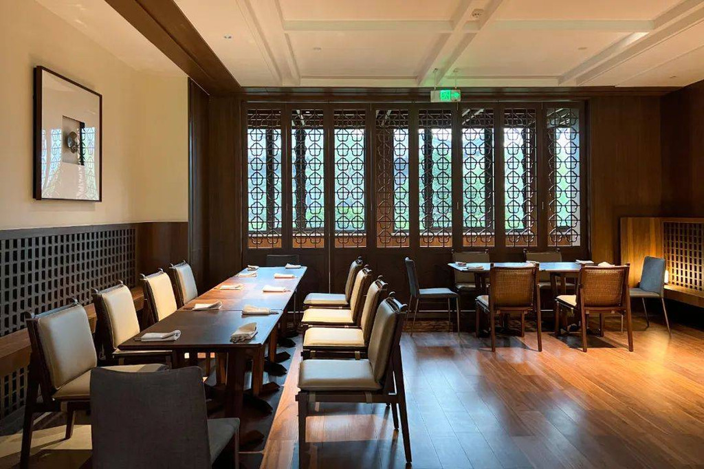 位于酒店观山楼二层的善·中餐厅和大观雅席·包厢。中餐厅延续了东山大观的中式美学气韵,运用了大量的木质和石材等元素,将整个空间显得沉稳大气。