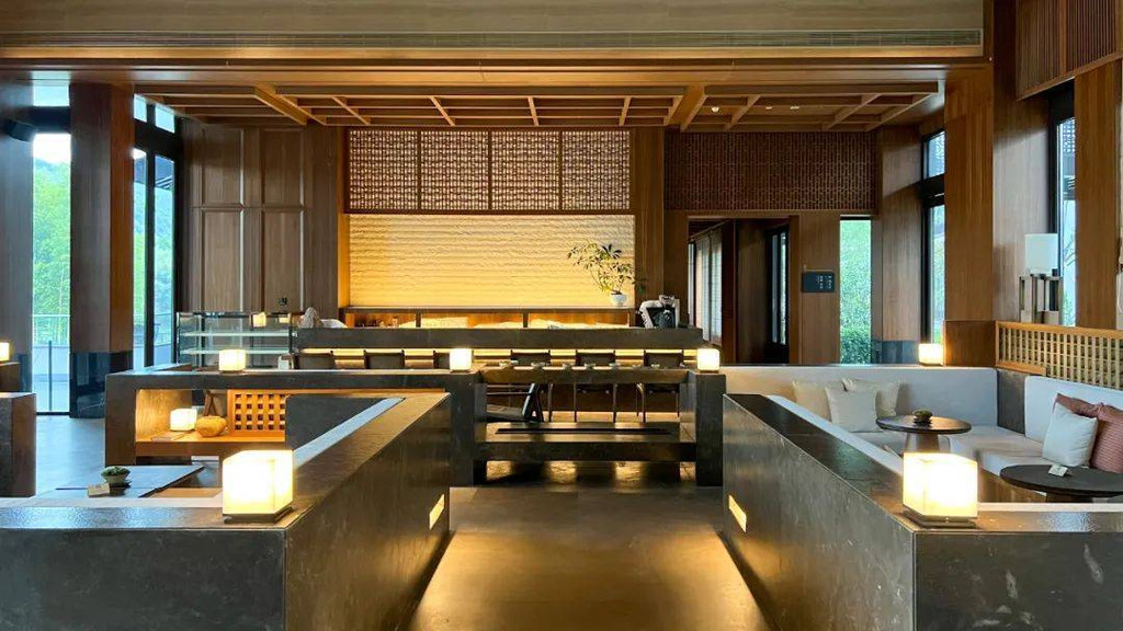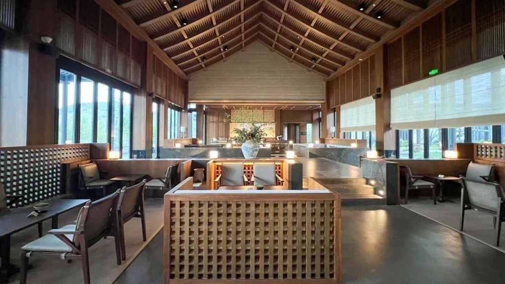 我很喜欢雅堂·大堂吧,这里的空间设计抛开了传统的平面空间,而是通过不同水平和空间位置营造出舒适的落座区域。窗外则是壮美的湖景。
