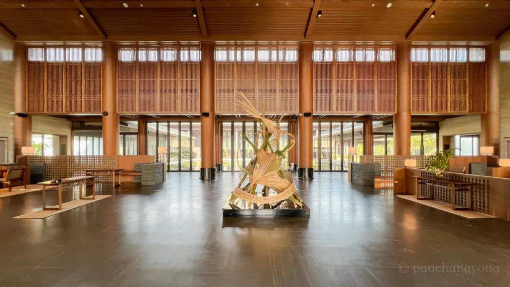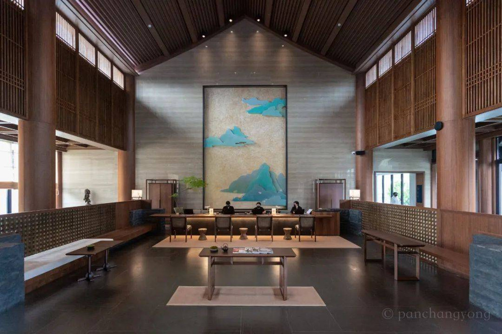 驱车抵达酒店大门口,走进酒店大堂,高挑空的设计与传统建筑的坡屋面、木格栅相结合,彰显新中式的大气与典雅。坐式办理入住/退房手续,更显对宾客的尊贵。