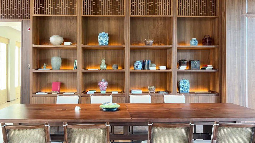 客房融入了很多本地的青瓷文化元素,比如门牌是青瓷粉盒装饰,器皿、装置茶点的果盘和果碟都是青瓷做的,还有明清时期的墙挂艺术装置。
