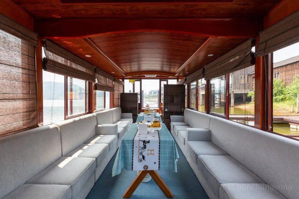 酒店坐拥6000亩诗意山水秘境。依山傍水,黄昏时分乘坐画舫游湖,总是不经意间营造出人在画中游的意境。