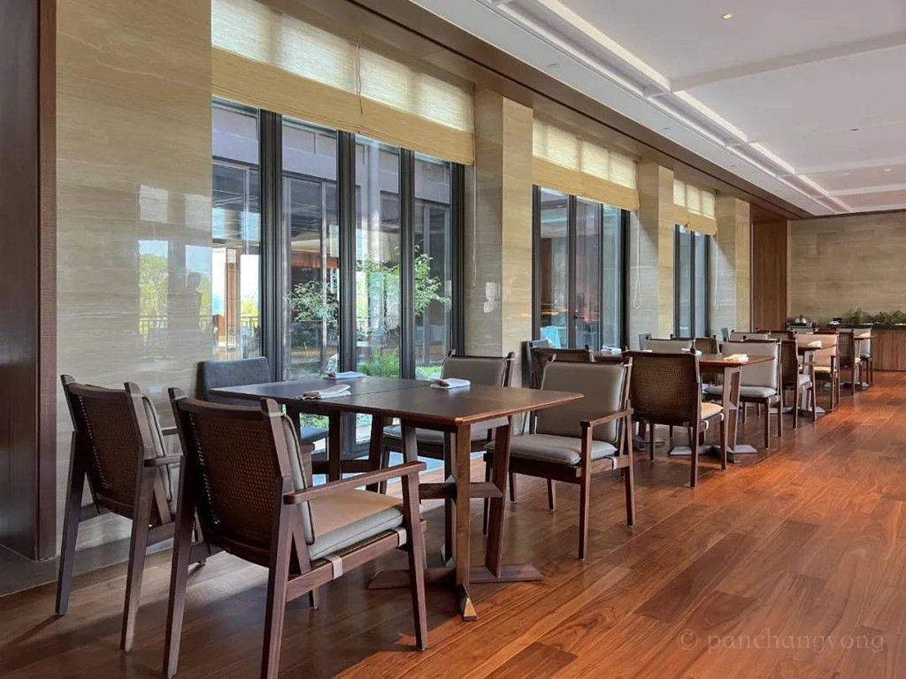 大堂吧的户外落座区域也非常宽敞,在此可以饱览壮美湖景,秋后微凉的天气,在此享用下午茶,也是极为舒适的用餐体验。