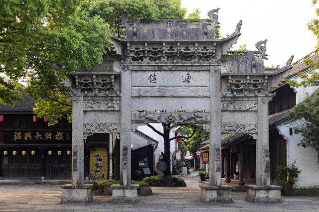 鲁镇景区,是国内首个鲁迅文化主题景区。纵横交错的河道水巷,飞檐挑角的戏台楼阁,鳞次栉比的商铺,景区还原了鲁迅笔下绍兴水乡风貌。当你漫步于古街,也许还会碰到工作人员扮演的祥林嫂、孔乙己、鲁四老爷等人物,带给你沉浸式体验。
