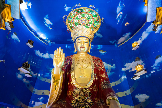 第三境兜率天宫,长约160米、宽约99米、高约81米,是景区标志性建筑。兜率天内院供奉着一座33米高的说法天冠弥勒像,是世界最大的室内坐佛。天宫顶部还有直径56.7米的紫金莲花,让人惊叹不已。不用去布达拉宫,来兜率天宫吧。