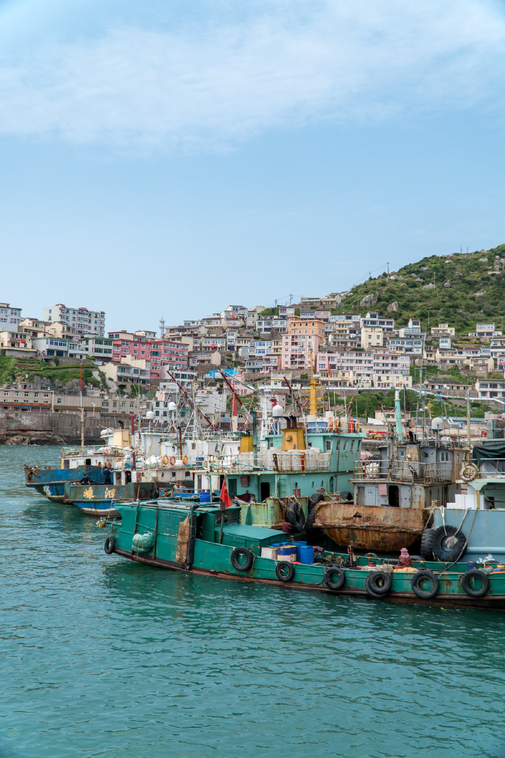 到嵊山岛码头,坐船去泗礁本岛。嵊山岛码头这里非常热闹,邻近水产品市场。在这里,你可以看到这里的渔民,捕鱼归来,海货交易、修理船只、泛泛闲聊,体验最真实的渔民生活。
