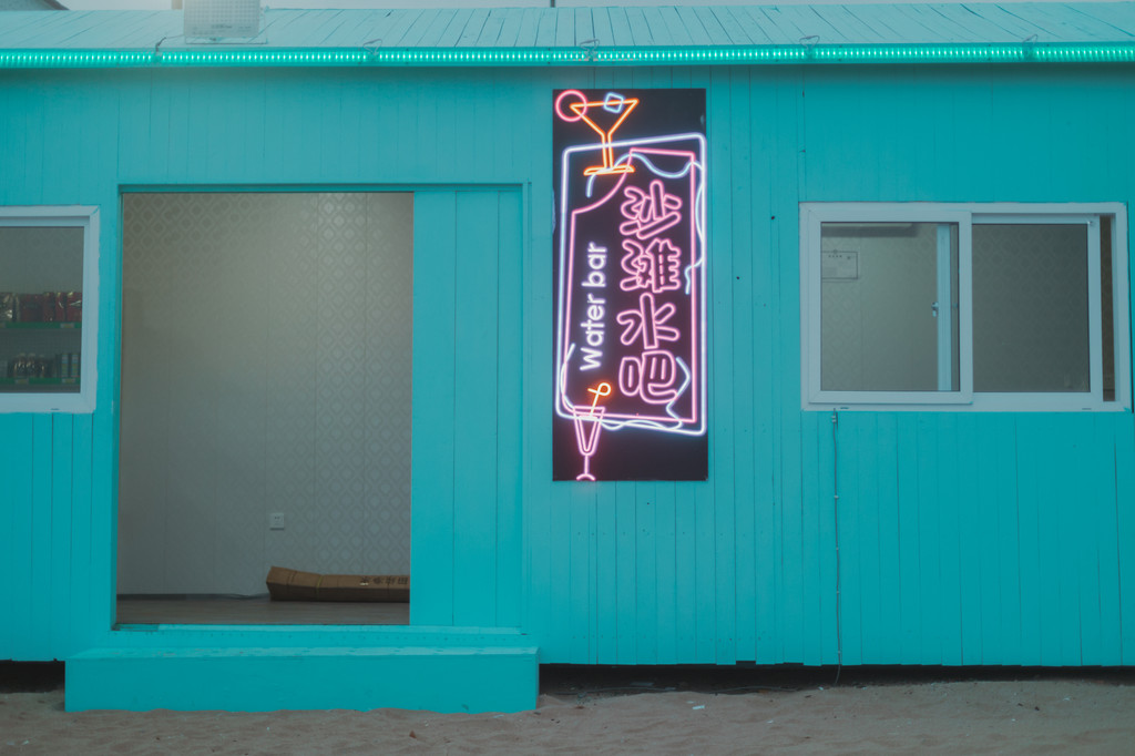 沙滩水吧没有饮料卖,但是灯牌配色,特别夏日清新。