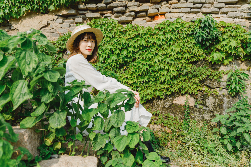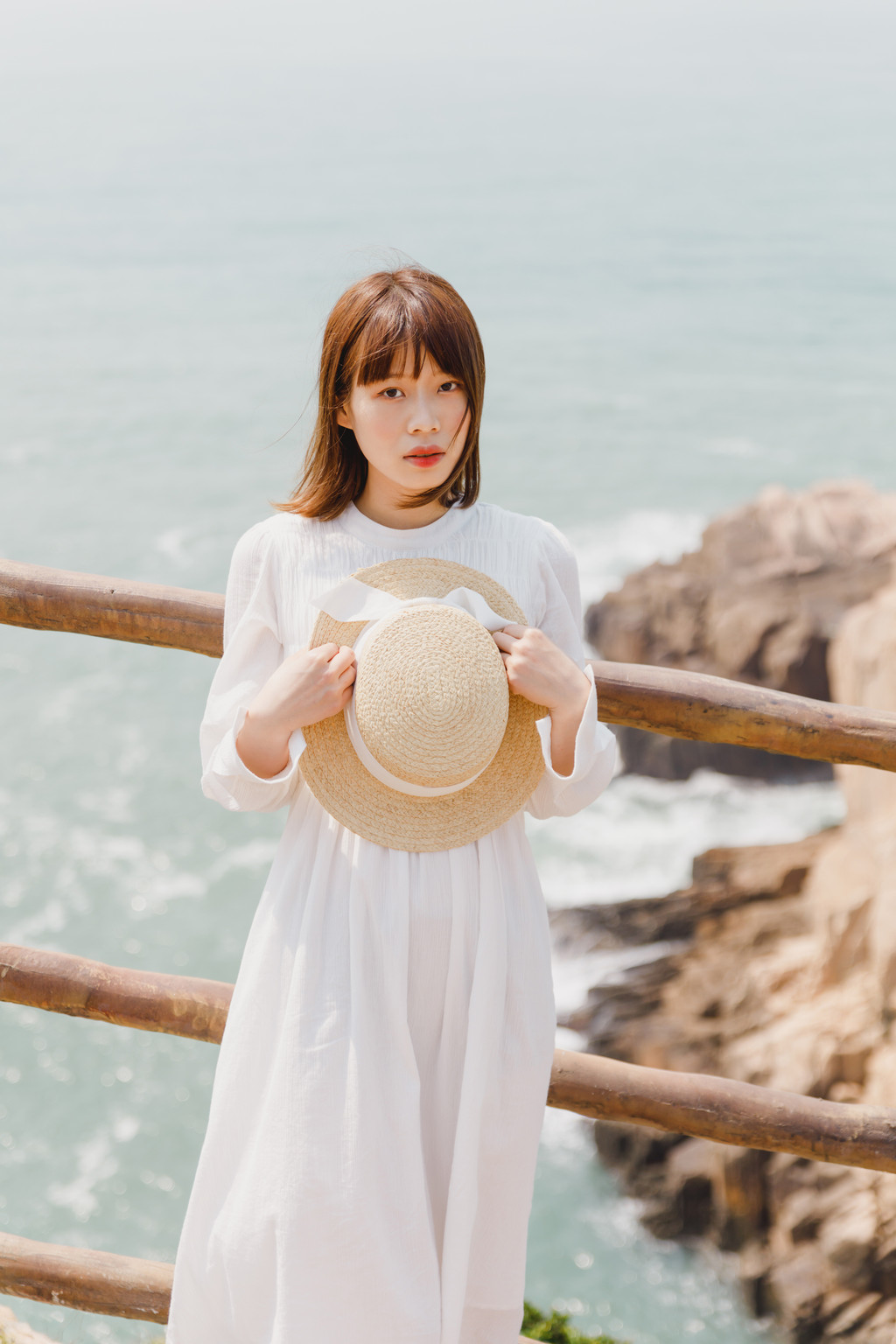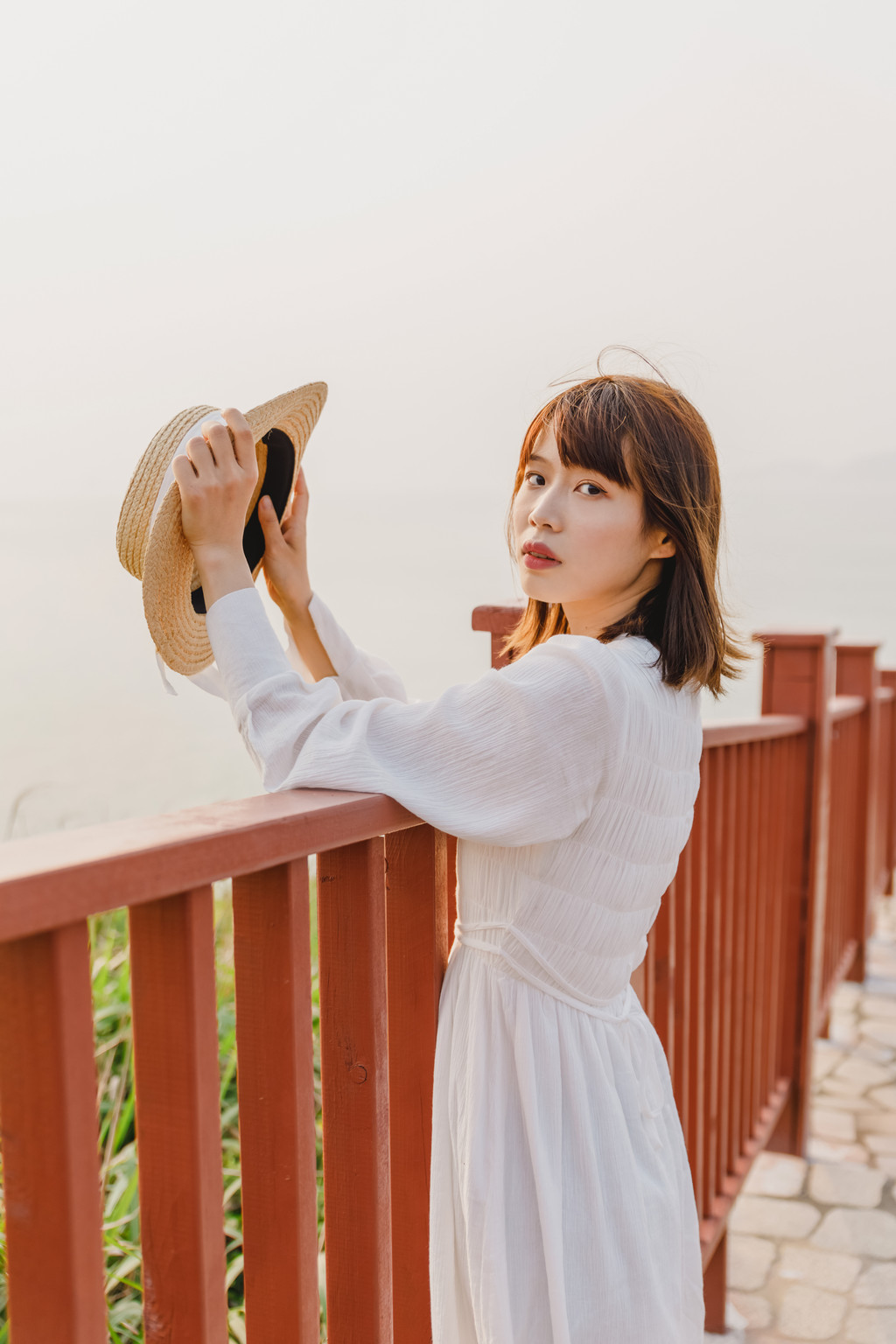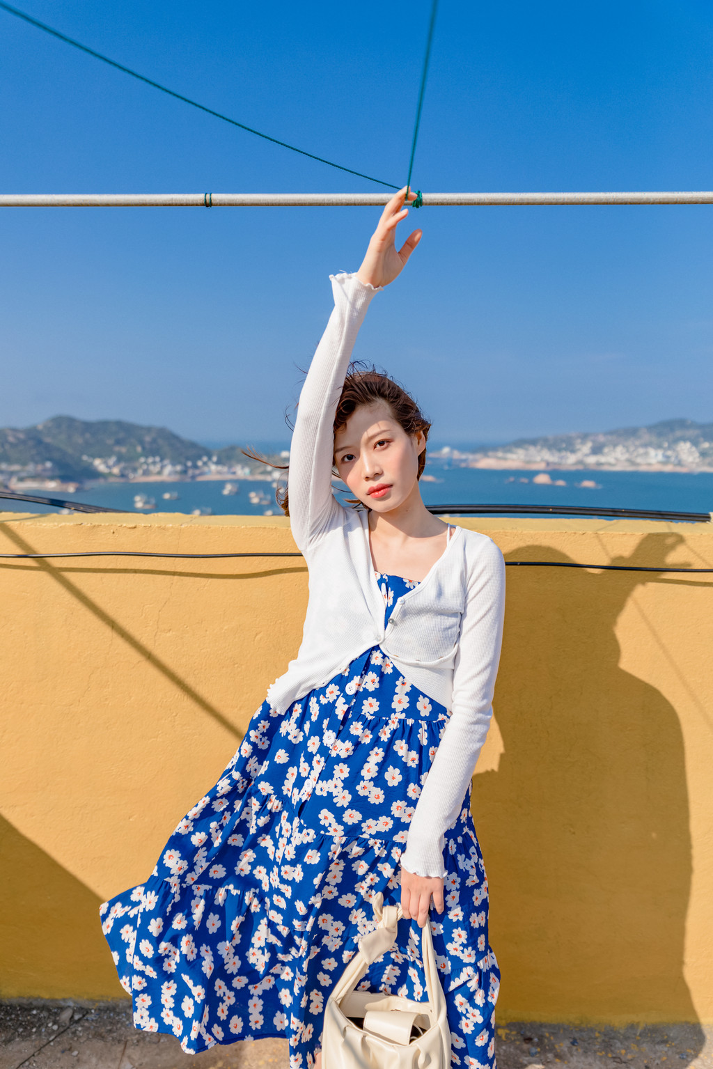 有了遮阳伞作为道具之后,动作可以丰富一些,倚靠、扶着,双手就不会在镜头前无处安放了。