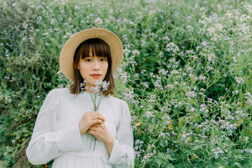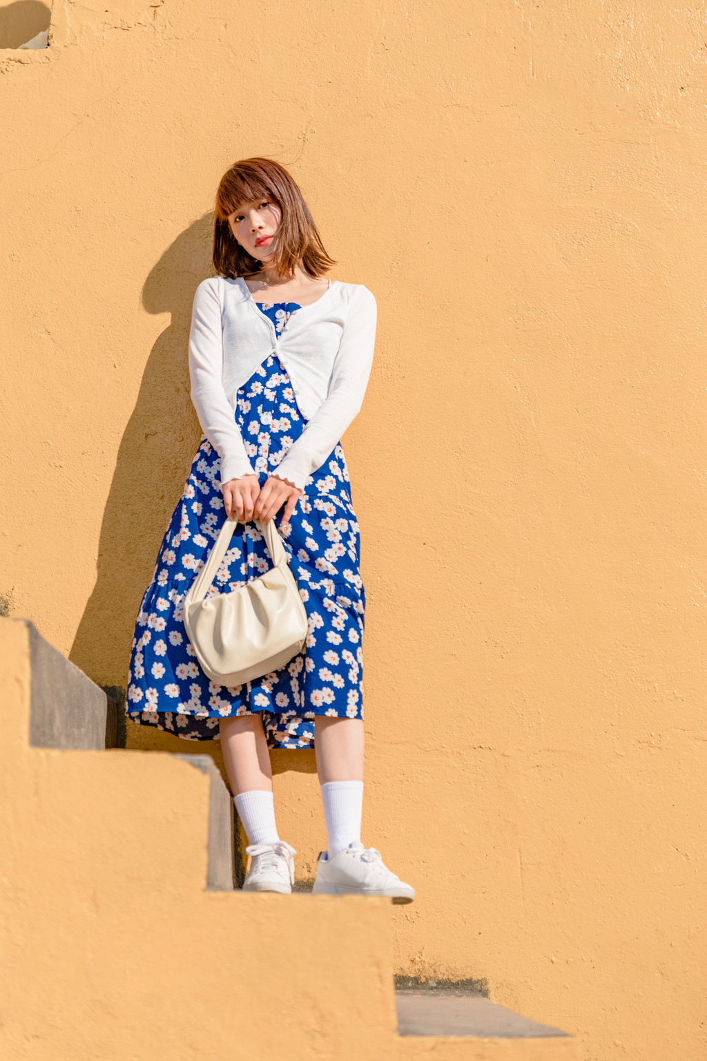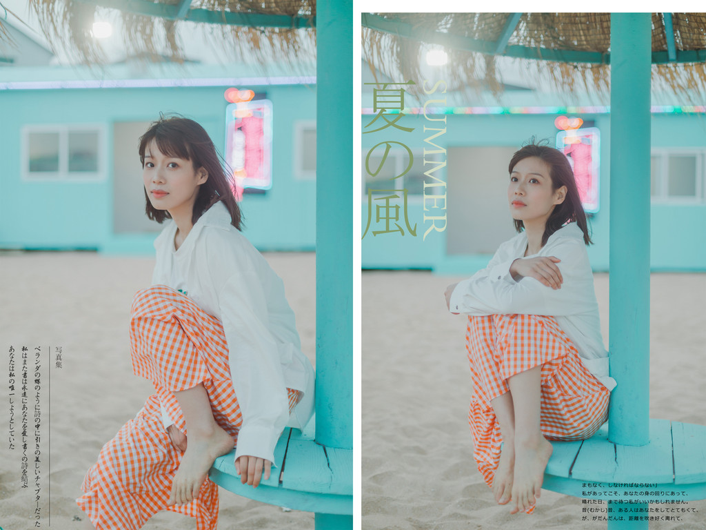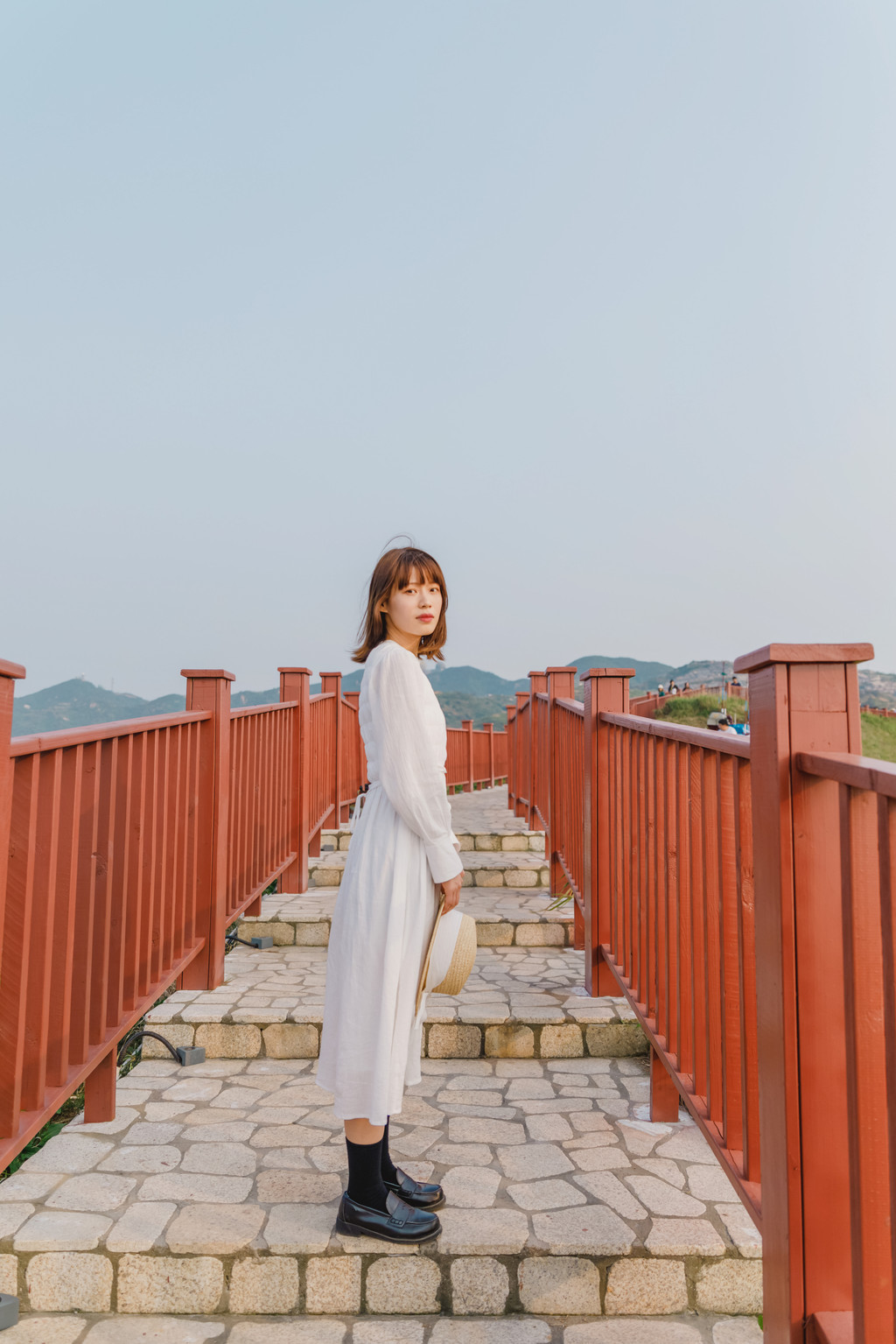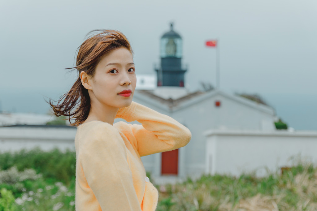 有了遮阳伞作为道具之后,动作可以丰富一些,倚靠、扶着,双手就不会在镜头前无处安放了。