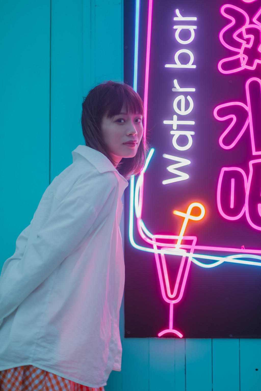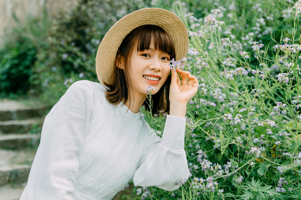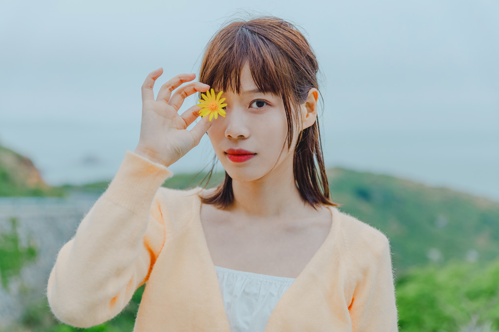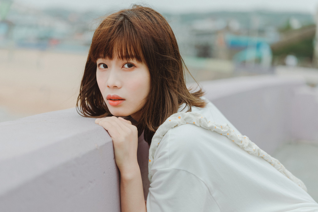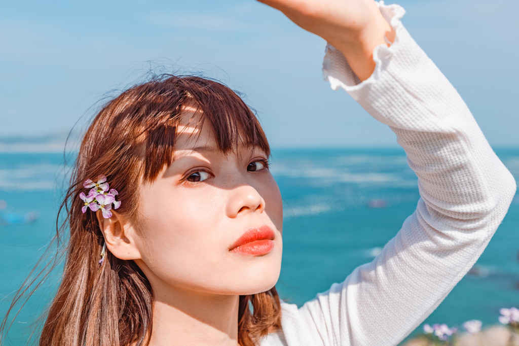 有了遮阳伞作为道具之后,动作可以丰富一些,倚靠、扶着,双手就不会在镜头前无处安放了。